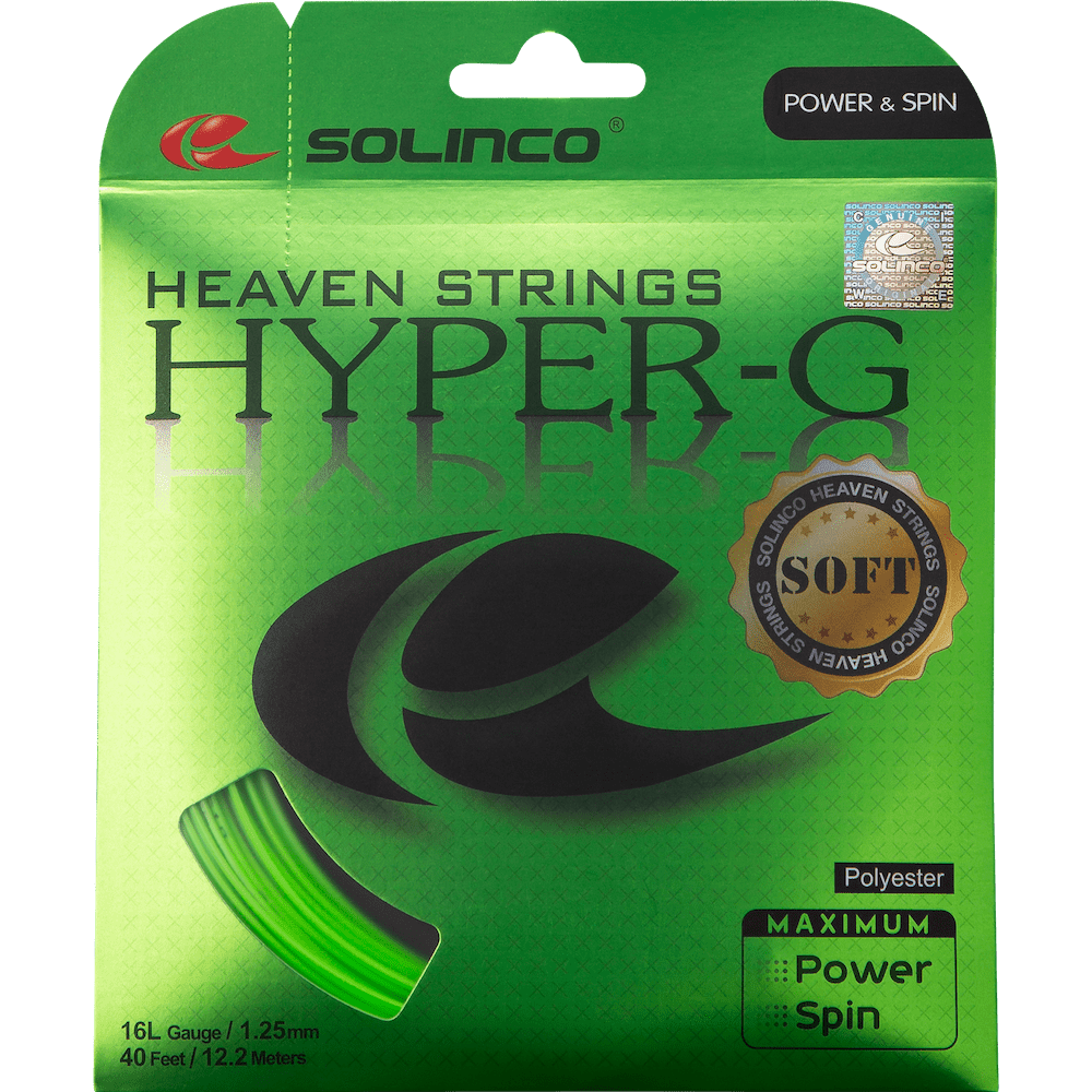 Mantendo as mesmas caraterísticas da Hyper-G original, a versão Hyper-G Soft aplica uma fórmula química que torna a corda menos rígida para jogadores que procuram maior conforto com a mesma combinação de potência e intensidade, controlo e jogabilidade.